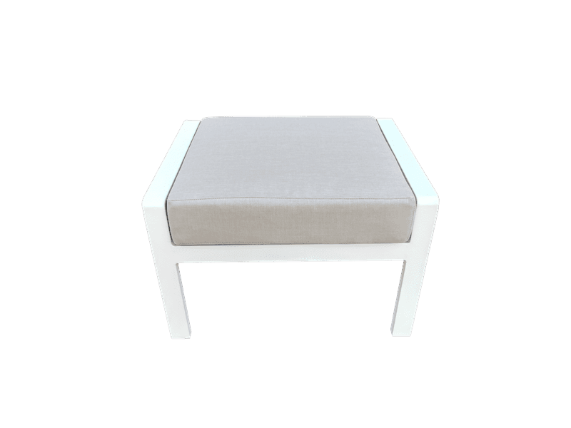 Colección fabricada en aluminio de alta calidad con estructura en aluminio lacado. Cojin de asiento y respaldo de 8cm con espuma de alta densidad y tapicería Waterproof. Perfecta para un patio, jardín o terraza. También apta para uso comercial en un café, bar o restaurante.