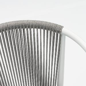 Colección fabricada en aluminio de alta calidad con estructura en aluminio lacado combinado con cuerda en Oficina. Cojín de asiento de 5cm. Apilable. Perfecta para un patio, jardín o terraza. También apta para uso comercial en un café, bar o restaurante.